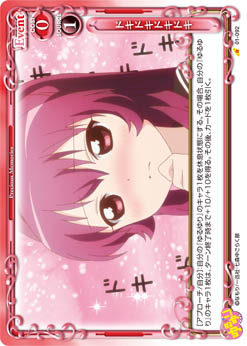 | [アプローチ/自分]:自分の『ゆるゆり』のキャラ1枚を休息状態にする。その場合、自分の『ゆるゆり』のキャラ1枚は、ターン終了時まで+10/+10を得る。その後、カードを1枚引く。 | ||