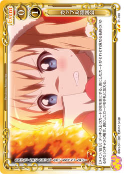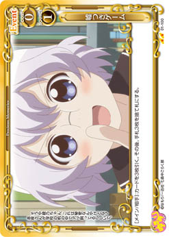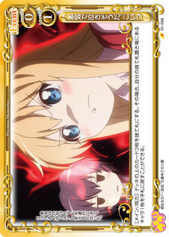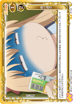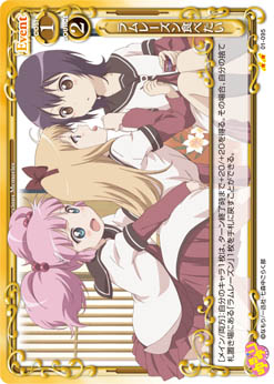 | [アプローチ/自分]:自分の『ゆるゆり』のキャラ1枚を活動状態にする。その場合、そのキャラは、このターン、2回までアプローチに参加することができる。 | ||
