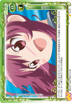 | [アプローチ/両方]:全てのプレイヤーは、キャラ1枚を指定する。その場合、指定された全てのキャラは、ターン終了時まで+20/±0を得る。 | ||