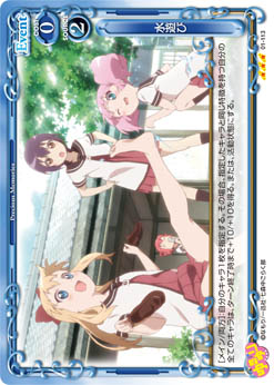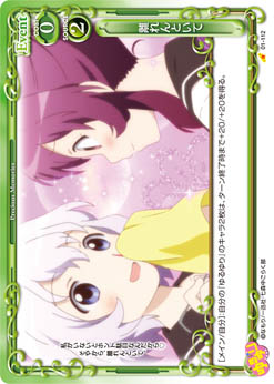 | [メイン/自分]:自分の『ゆるゆり』のキャラ2枚は、ターン終了時まで+20/+20を得る。 | ||