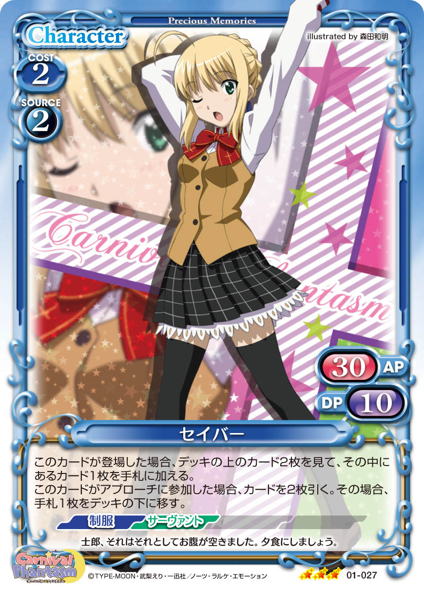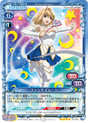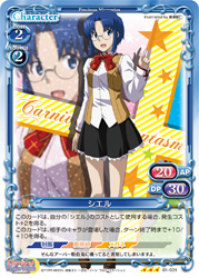 | このカードは、自分の「シエル」のコストとして使用する場合、発生コスト+2を得る。このカードは、相手のキャラが登場した場合、ターン終了時まで+10/+10を得る。 | ||