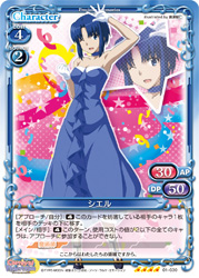 | このカードがアプローチでポイントを与えた場合、自分のポイント置き場にあるキャラ1枚を手札に戻すことができる。[アプローチ/自分]:《8》このカードを妨害している相手のキャラ1枚を捨て札にする。その場合、カードを2枚引く。 | ||