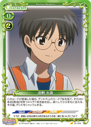 | このカードが登場した場合、デッキの上のカード7枚を見て、その中にある【真祖】を持つキャラ1枚を抜き出し、表にしてから手札に加える。その後、デッキをシャッフルする。 | ||