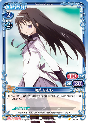 | [メイン/自分]:《休》自分の「鹿目 まどか」1枚は、ターン終了時まで+10/+10を得る。 | ||