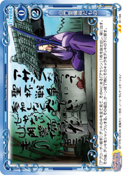 | [アプローチ/相手]:デッキの中を全て見て、その中にある「アサシン」1枚を抜き出し、場に出す。その後、デッキをシャッフルする。その場合、ターン終了時にそのキャラをデッキの下に移す。 | ||
