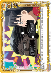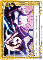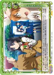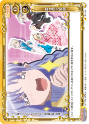 | [アプローチ/自分]:相手のデッキの上のカード2枚を捨て札にする。捨て札にしたカードの使用コストの値の合計値が3以上の場合、相手のキャラ1枚は、ターン終了時まで-20/-20を得る。 | ||