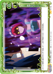 | [メイン/両方]:自分の捨て札置き場にある『カーニバル・ファンタズム』のキャラ10枚をデッキに戻し、デッキをシャッフルする。自分の「セイバー」がいる場合、相手のキャラ1枚を指定する。このターン、指定されたキャラはアプローチと妨害に参加することができない。 | ||