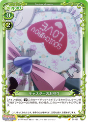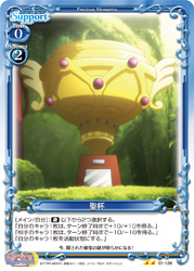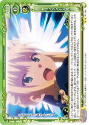 | [メイン/両方]:《0》このカードがセットされているキャラは、ターン終了時まで+20/+20を得る。その場合、このカードをデッキの下に移す。 | ||