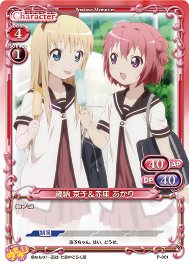 | このカードは、手札にある場合、自分のポイント置き場にあるカード1枚につき使用コスト-1を得る。このカードが相手のアプローチによってポイント置き場に置かれた場合、自分の捨て札置き場にあるキャラ1枚を手札に戻すことができる。 | ||