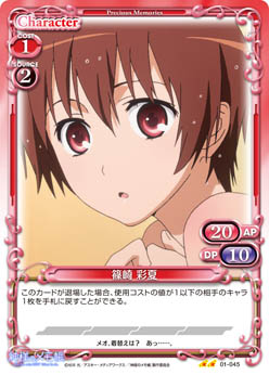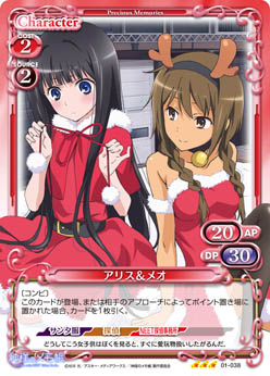 | 〔コンビ〕〔天然2〕このカードがアプローチに参加した場合、相手のキャラ2枚は、ターン終了時まで-10/-10を得る。 | ||