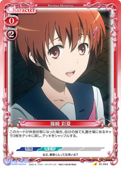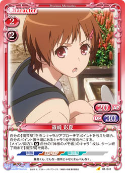 | 自分の【園芸部】を持つキャラがアプローチでポイントを与えた場合、自分のポイント置き場にあるキャラ1枚を表向きにする。[メイン/両方]:《0》自分の『神様のメモ帳』のキャラ1枚は、ターン終了時まで【園芸部】を得る。 | ||