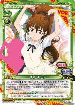 | 〔コンビ〕このカードが登場した場合、このターン、自分が次にプレイする「種島 ぽぷら」または「山田 葵」1枚は、使用コスト-3を得る。 | ||