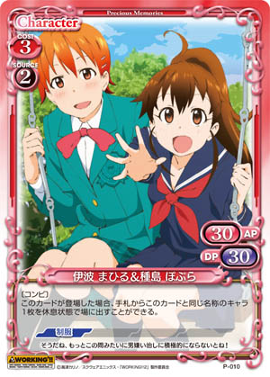 | 〔コンビ〕このカードが登場した場合、手札からこのカードと同じ名称のキャラ1枚を休息状態で場に出すことができる。 | ||