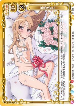 | [メイン/自分]:デッキの上のカード5枚を見て、その中にある「逢坂 大河」1枚を抜き出し、表にしてから手札に加える。その後、残りのカードを任意の順番でデッキの下に移す。その場合、このターン、自分が次にプレイする「逢坂 大河」1枚は、使用コスト-1を得る。 | ||