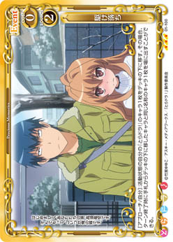 | [アプローチ/自分]:自分の『とらドラ!』のキャラ1枚は、ターン終了時まで+30/-30を得る。 | ||