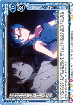 | [アプローチ/両方]:手札から「川嶋 亜美」1枚を捨て札にする。その場合、相手のキャラ1枚は、ターン終了時まで-20/-20を得る。このターン、そのキャラが退場した場合、自分の捨て札置き場にある「川嶋 亜美」1枚を手札に戻す。 | ||
