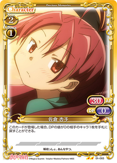 | このカードが登場した場合、DPの値が0の相手のキャラ1枚を手札に戻すことができる。 | ||