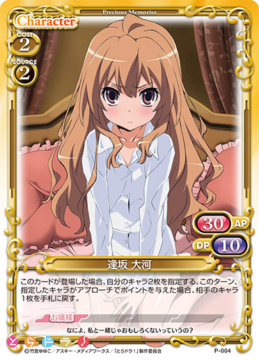 | 〔コンビ〕このカードと同じ名称のキャラがアプローチに参加した場合、このカードとそのカードは、ターン終了時まで+10/+10を得る。 | ||
