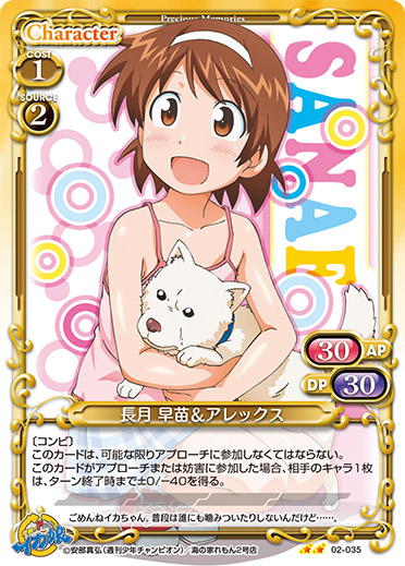 | 〔コンビ〕このカードが登場した場合、相手はサポートエリアにいるAP/DPの値を持つ自分のキャラ1枚をデッキの下に移す。 | ||