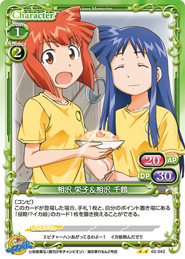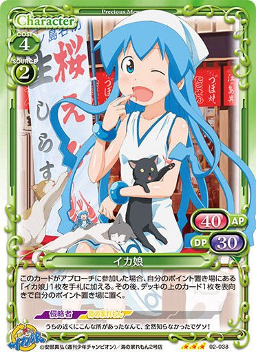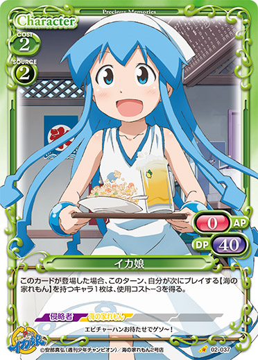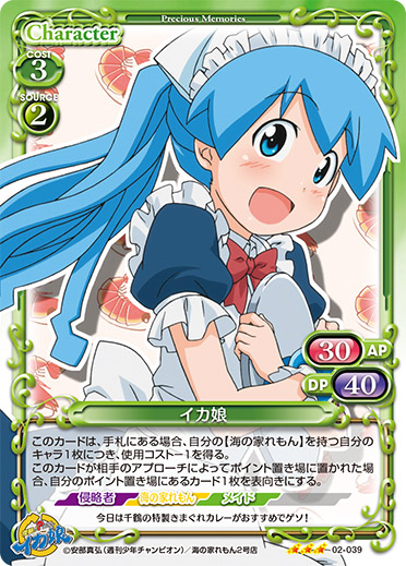 | 〔コンビ〕このカードが登場した場合、手札1枚と、自分のポイント置き場にある『侵略!?イカ娘』のカード1枚を置き換えることができる。 | ||