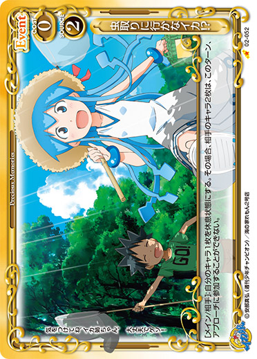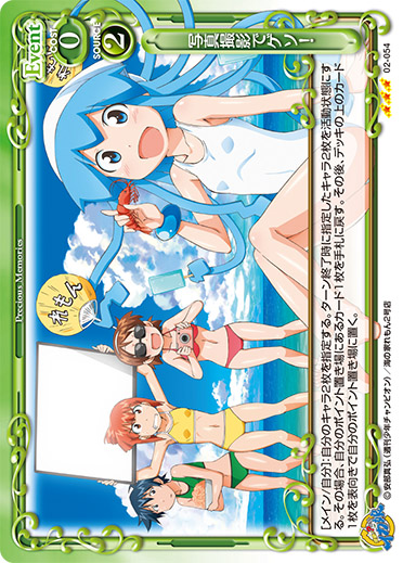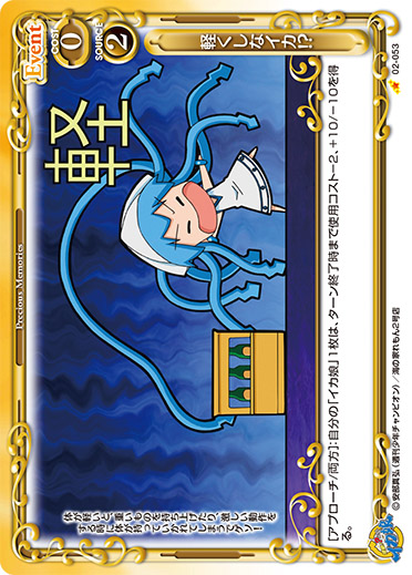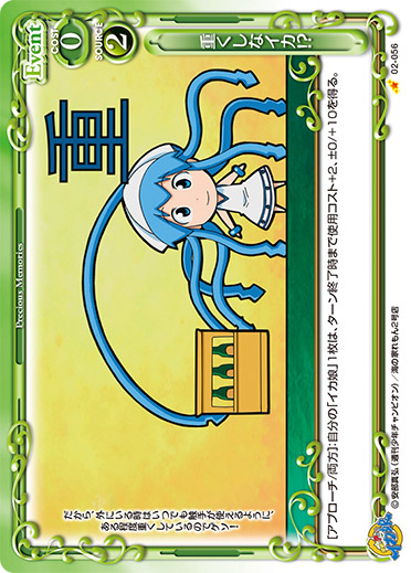 | [アプローチ/両方]:自分の「イカ娘」1枚は、ターン終了時まで使用コスト-2、+10/-10を得る。 | ||