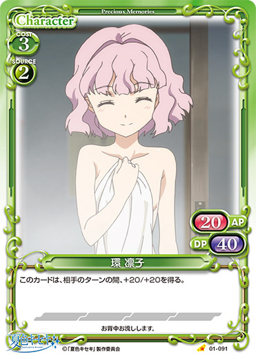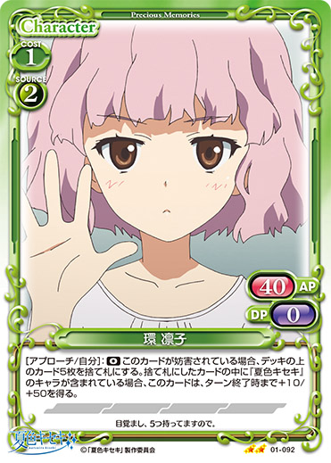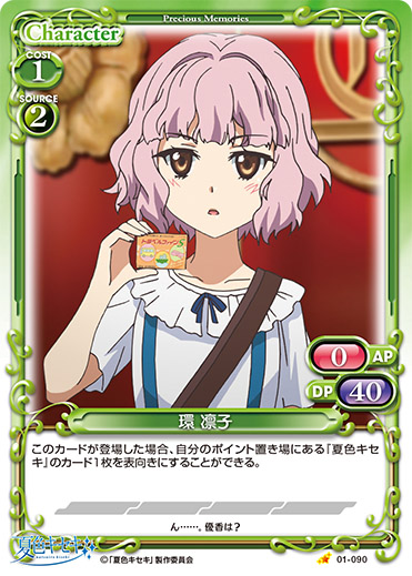 | このカードが登場した場合、自分のポイント置き場にある『夏色キセキ』のカード1枚を表向きにすることができる。 | ||