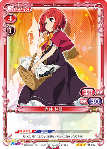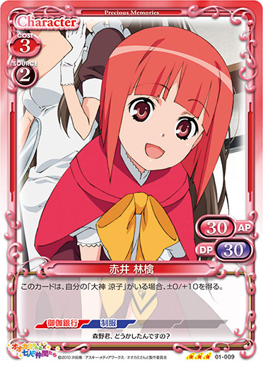 | このカードは、自分の「赤井 林檎」がいる場合、+10/±0を得る。 | ||