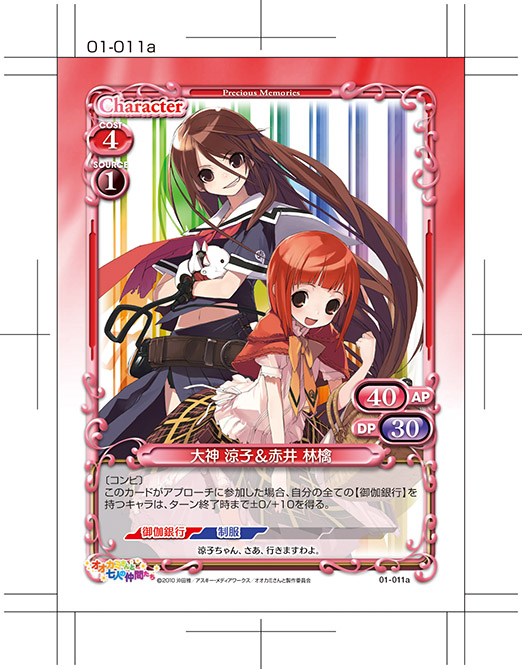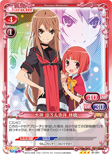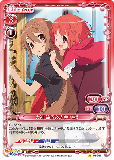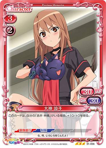 | このカードは、自分の「大神 涼子」がいる場合、±0/+10を得る。 | ||