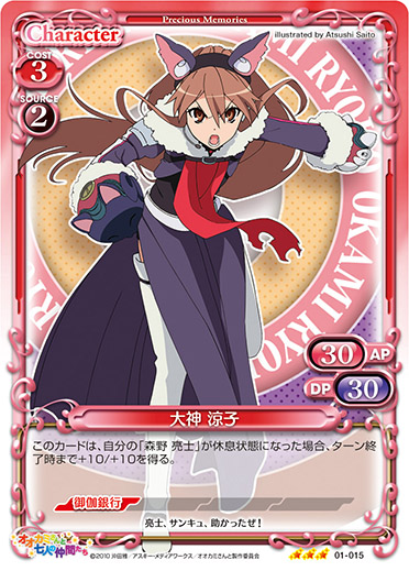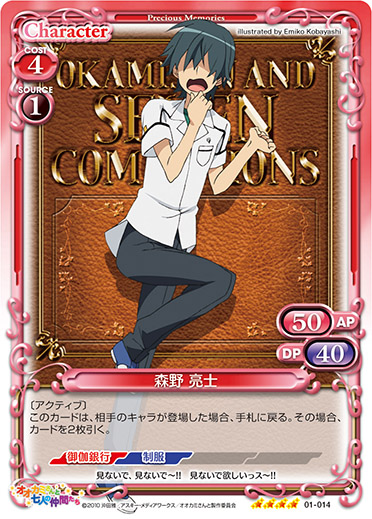 | このカードは、自分の「森野 亮士」が休息状態になった場合、ターン終了時まで+10/+10を得る。 | ||