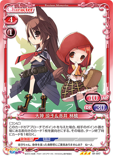 | 〔コンビ〕このカードがアプローチでポイントを与えた場合、相手のポイント置き場にある表向きのカード1枚を裏向きにする。その場合、ターン終了時にカードを1枚引く。 | ||