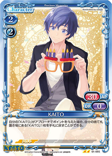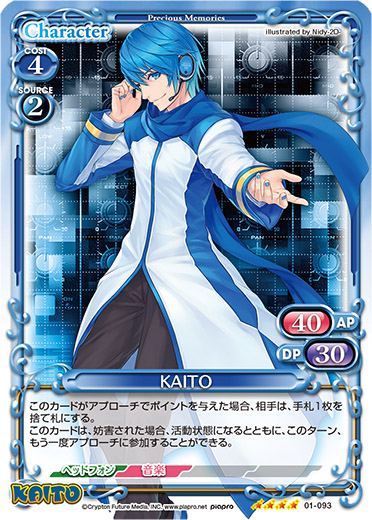 | 自分の「KAITO」がアプローチでポイントを与えた場合、自分の捨て札置き場にある「KAITO」1枚を手札に戻すことができる。 | ||