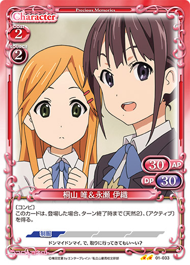 | イベントカードがプレイされた場合、このカードのAP/DPの値を、ターン終了時まで30/30に変更する。 | ||