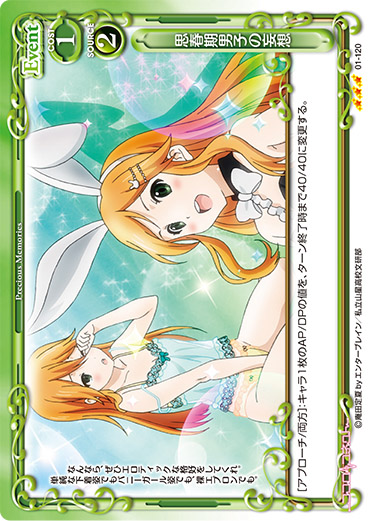 | [アプローチ/両方]:キャラ1枚のAP/DPの値を、ターン終了時まで40/40に変更する。 | ||
