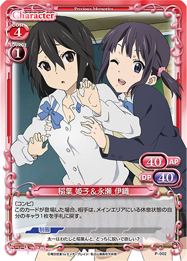 | 〔コンビ〕このカードが登場した場合、相手は、メインエリアにいる休息状態の自分のキャラ1枚を手札に戻す。 | ||