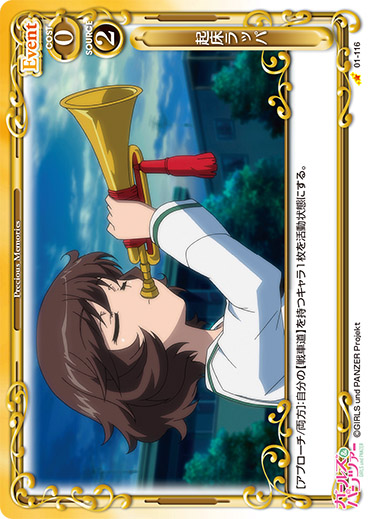 | [アプローチ/両方]:自分の【戦車道】を持つキャラ1枚を活動状態にする。 | ||