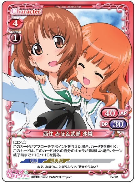 | 〔コンビ〕このカードがアプローチまたは妨害に参加した場合、自分のキャラ2枚は、ターン終了時まで+10/+10を得る。 | ||