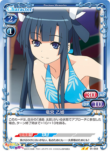 | このカードは、自分の「浦島 太郎」がいる状態でアプローチに参加した場合、ターン終了時まで+10/+10を得る。 | ||