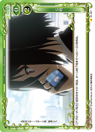 | [アプローチ/両方]:相手のキャラ1枚は、ターン終了時まで+20/-20を得る。 | ||