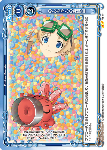 | [アプローチ/自分]:アプローチに参加している自分の「枝川 希美」1枚は、ターン終了時まで+20/+20を得る。 | ||