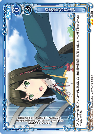 | [アプローチ/自分]:アプローチに参加している自分の「東雲 皐月」1枚は、ターン終了時まで+20/+20を得る。 | ||