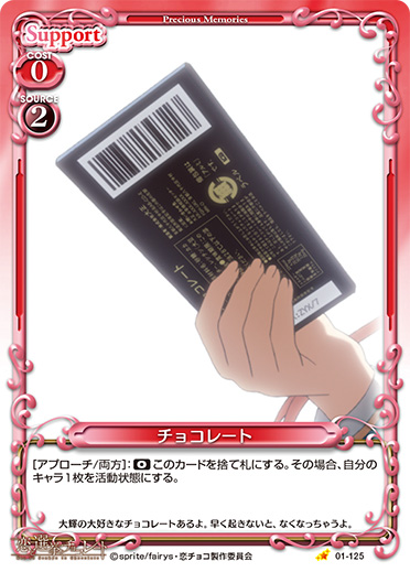 | 〔コンビ〕このカードがアプローチでポイントを与えた場合、自分のポイント置き場にあるキャラ1枚を場に出す。その後、デッキの上のカード1枚を自分のポイント置き場に表向きで置く。 | ||
