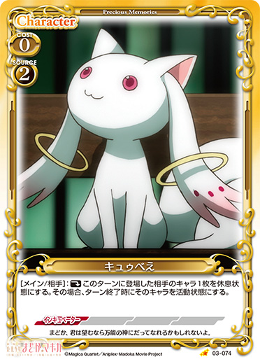 | [メイン/相手]:《休》このターンに登場した相手のキャラ1枚を休息状態にする。その場合、ターン終了時にそのキャラを活動状態にする。 | ||