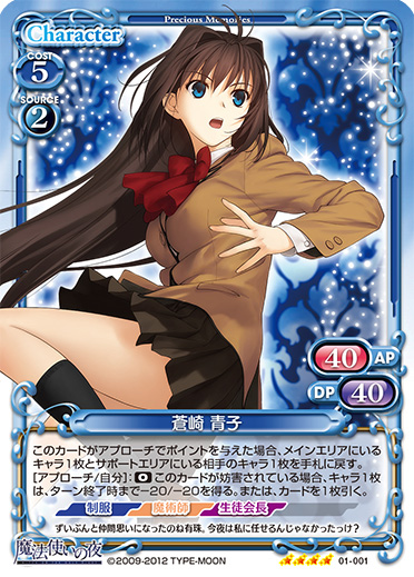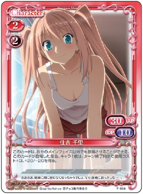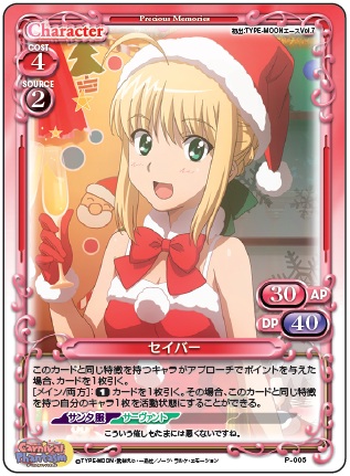 | このカードは、自分のメインフェイズ以外でも登場させることができる。 このカードが登場した場合、キャラ1枚は、ターン終了時まで使用コスト+3、+20/-20を得る。 | ||