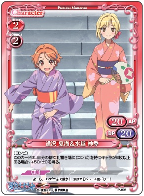 | 〔コンビ〕 このカードは、自分の捨て札置き場に〔コンビ〕を持つキャラが6枚以上ある場合、+50/±0を得る。 | ||