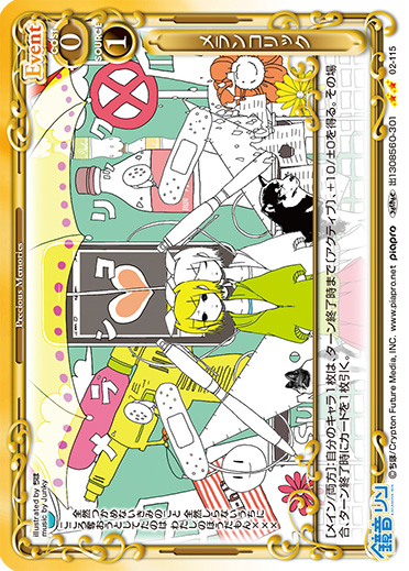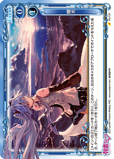 | [メイン/自分]:カードを1枚引く。このターン、自分のキャラがアプローチでポイントを与えた場合、ターン終了時にカードを1枚引く。 | ||