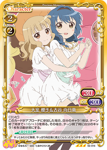 | 〔コンビ〕このカードは、「古谷 向日葵」または「大室 櫻子」のコストとして使用する場合、発生コスト+2を得る。 | ||