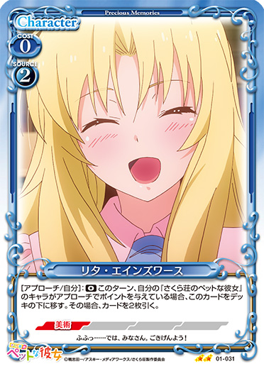 | [アプローチ/自分]:《0》このターン、自分の『さくら荘のペットな彼女』のキャラがアプローチでポイントを与えている場合、このカードをデッキの下に移す。その場合、カードを2枚引く。 | ||