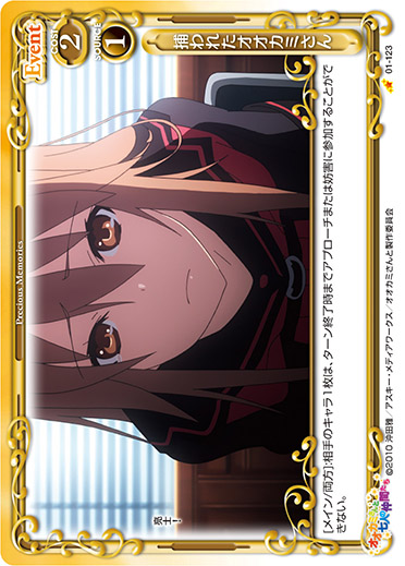 | [メイン/両方]:相手のキャラ1枚は、ターン終了時までアプローチまたは妨害に参加することができない。 | ||