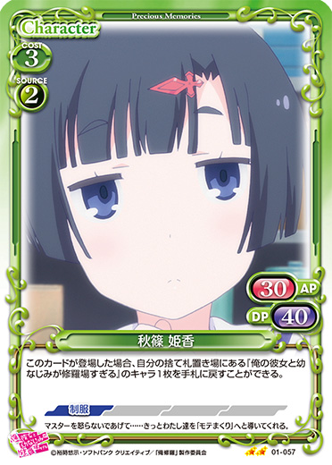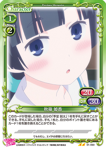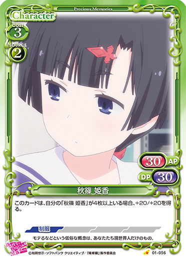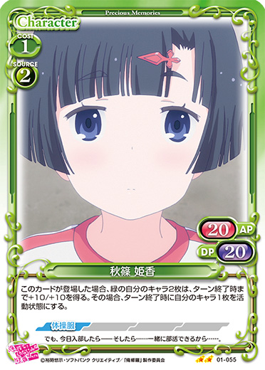 | このカードは、自分の「秋篠 姫香」が4枚以上いる場合、+20/+20を得る。 | ||
