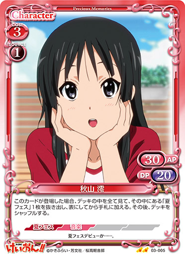 | このカードが登場した場合、デッキの中を全て見て、その中にある「夏フェス」1枚を抜き出し、表にしてから手札に加える。その後、デッキをシャッフルする。 | ||